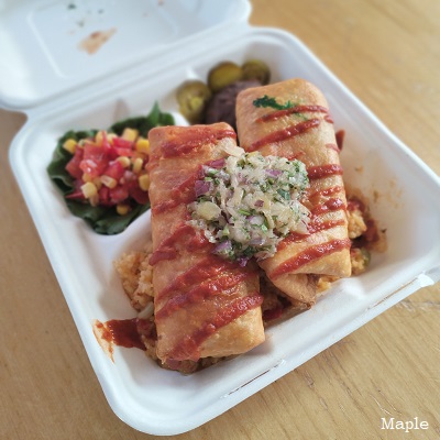 スブラキ($15)とチミチャンガ($18)