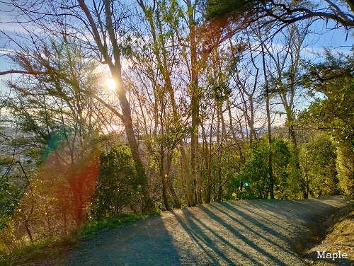 帰り道。夕暮れ前の日差しが柔らかくなる時間帯。キラキラして見えます。