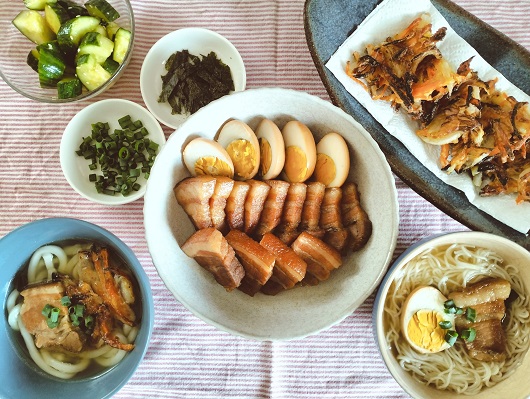 大晦日ご飯は、毎年三枚肉(豚の角煮)と麺類とかきあげ。